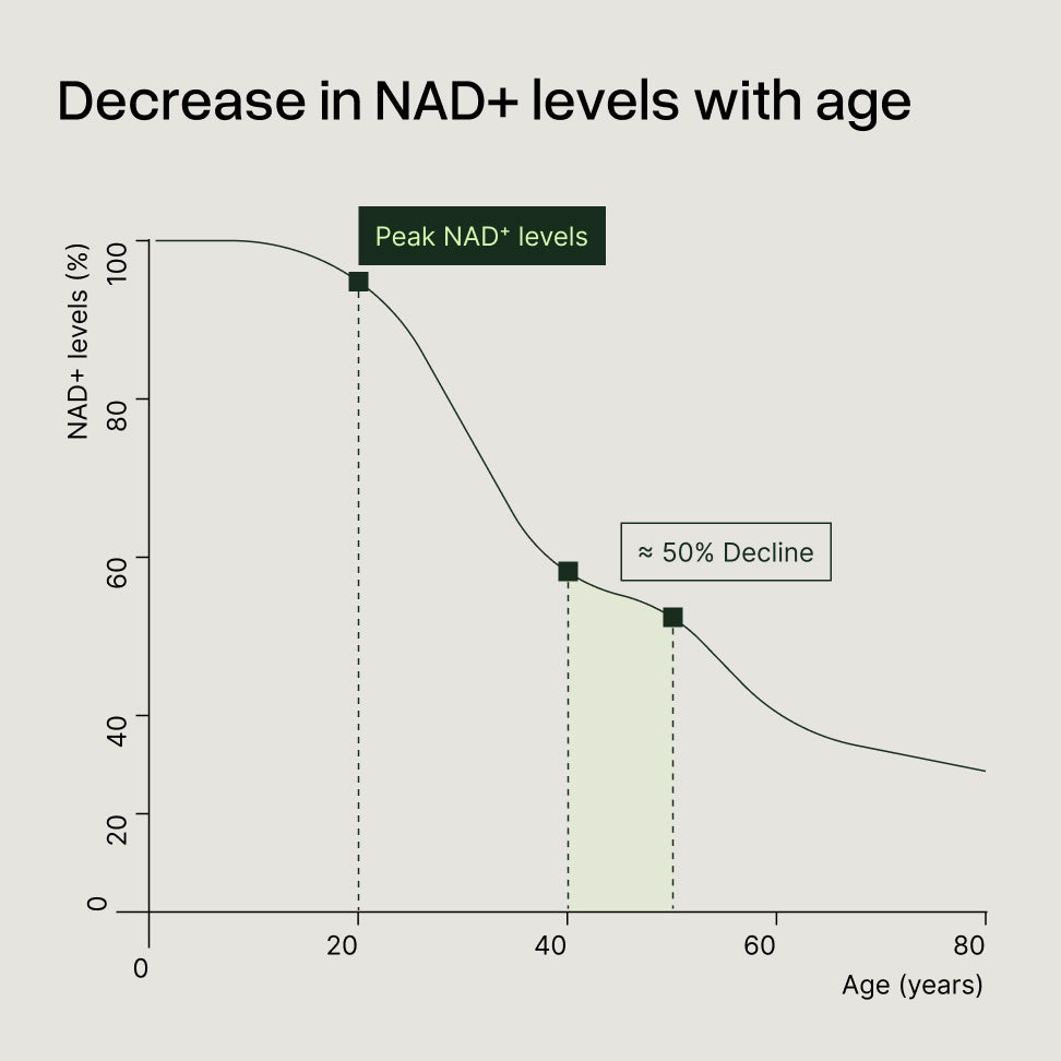 Research shows that its levels begin to decline already after the age of 30, and by 50 they may drop by nearly half.When NAD+ becomes insufficient, cells face an energy deficit. As a result, they recover more slowly and function less effectively than in youth. This gradual decline is directly linked to the natural aging process.